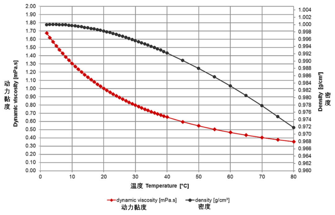 水温与动力黏度和密度的关系 | 图源:Wiki