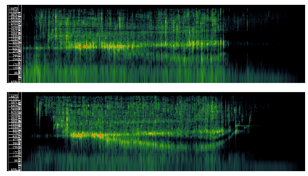 从上图你可以看出,相比密度,温度对水的黏度影响更大。黏度变化在蜂蜜这类比较稠的流体中更容易看出来,在水流中就不那么明显。一种解释认为热水黏度低、分子运动活跃,更容易产生更多、更大的气泡,而大气泡破裂时的声音频率更低。然而,倒冷水和倒热水的声音频谱图却显示,其他条件相同时,二者声音的整体频率差不多,但强度分布不同。