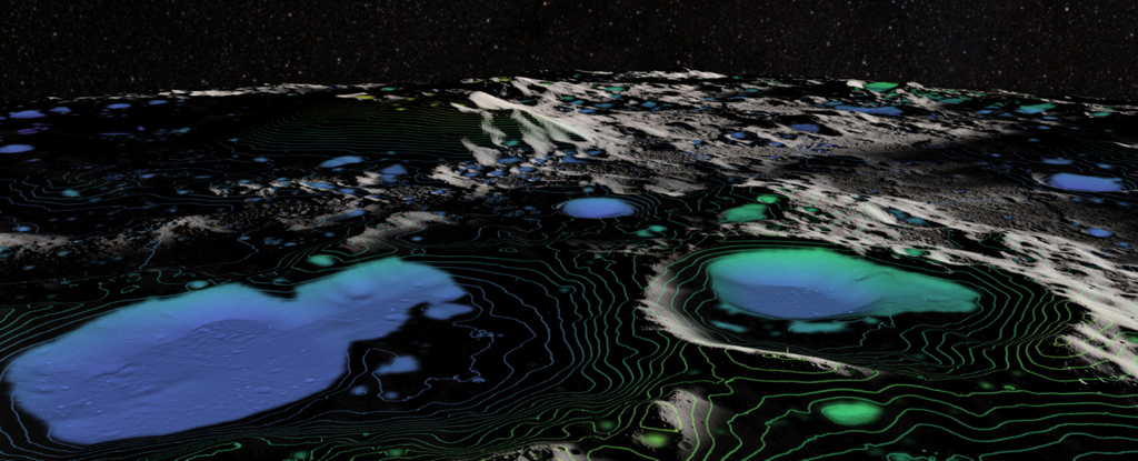 与此同时,科罗拉多大学博尔德分校的研究者也在探索水分子在月球的另一处藏身点——位于月球极点永久阴影区的环形山。在高纬度条件下,高耸的环形山就能造就一处阳光永远照射不到的区域。在这些地方,温度永远不会高于-163摄氏度,为水冰的存在提供了条件。