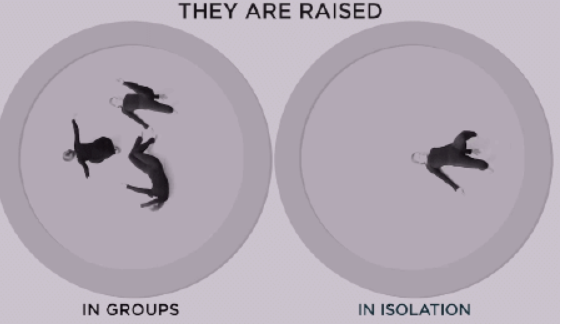 左边的一组代表实验中与同伴一起长大的斑马鱼,而右边则是孤单的幼鱼: