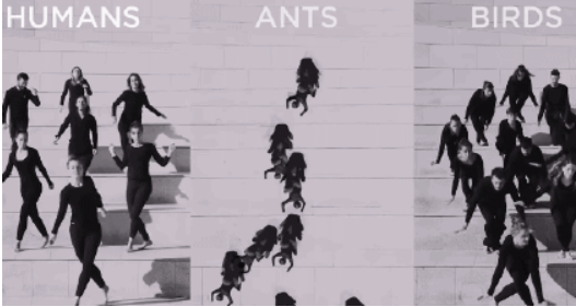 这个作品最令我印象深刻的地方是:在列举不同的社会动物时,舞者们模仿蚂蚁的技巧真是十分独特: