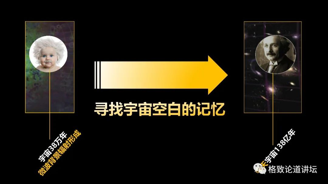 对于宇宙来说也是这样子,我们现在只能看到它的婴儿期和现在的成熟的成人期,那么中间这么漫长的空白的记忆,我们也想去寻找它。