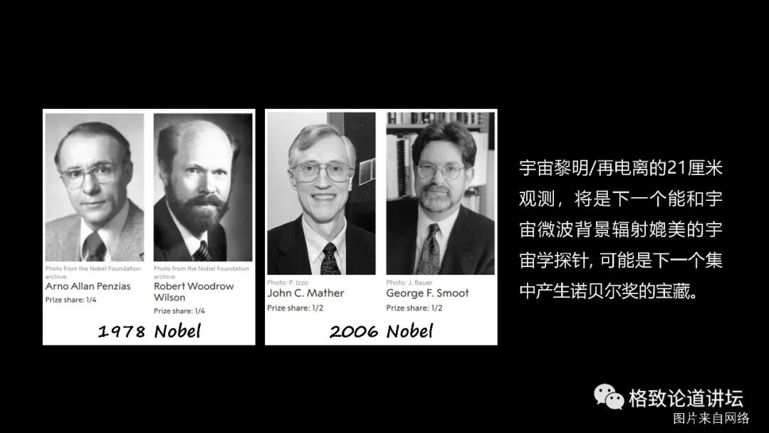 那么在未来,对宇宙黎明和再电离探测的21厘米观测也将能极大地推动宇宙学的发展,并且我们也有理由相信,能够产生更多的诺贝尔级的成果。