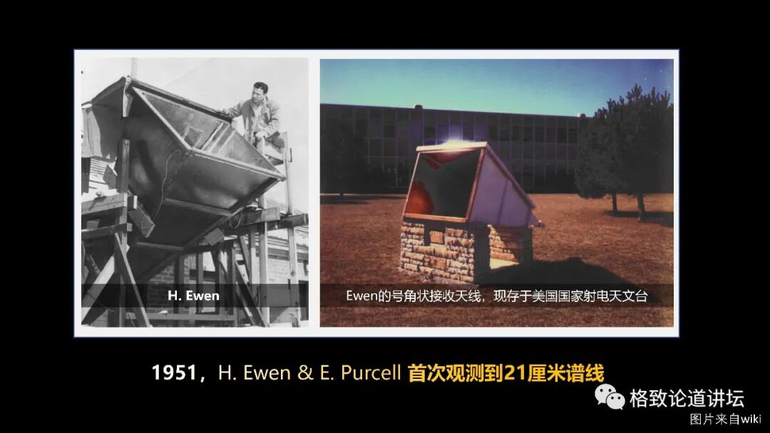 这个也是21厘米谱线的这个发现的历史。很不幸的是,在这之后Ewen和Purcell就没有在射电这个方向继续发展。