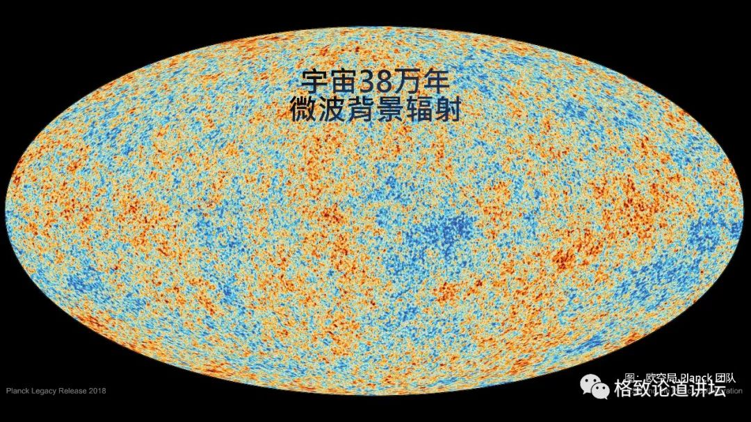 它实际上是对宇宙在38万年时候的物质状态的一个惊鸿一暼。我们今天看宇宙微波背景辐射,各个方向上它的温度几乎是完全一样的。