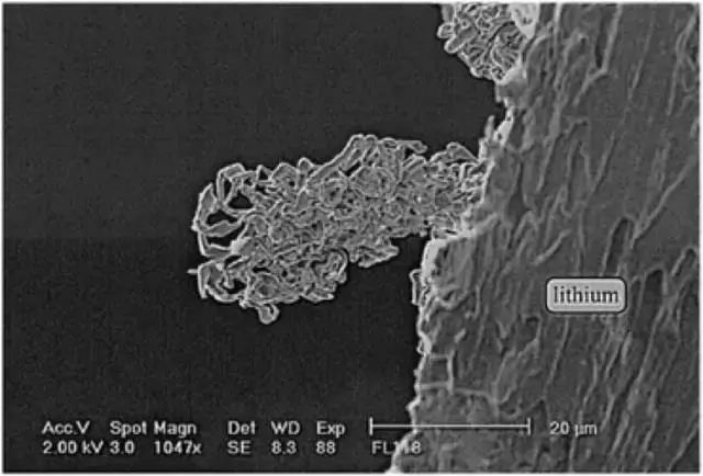 枝晶生长是铜、镍、锌等金属在电镀过程中常见的电沉积现象。锂离子电池在使用过程中,锂离子还原时也会形成的树枝状的金属锂单质,依附在电极的表面,形成一些“小毛刺”。这些“小毛刺”会不断沉淀生长,最终就会刺穿隔膜,造成短路。因此,锂电池自身就暗藏着安全隐患。