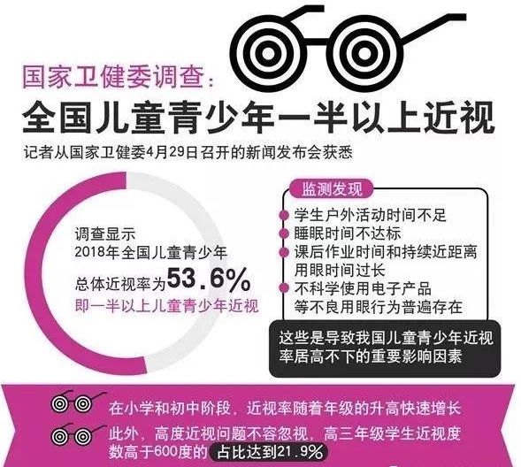 除了人数多,近视低龄化、重度化也亟须引起重视。据世界卫生组织的调查数据显示,我国青少年近视率为70%,居世界第一;小学生近视率接近40%。