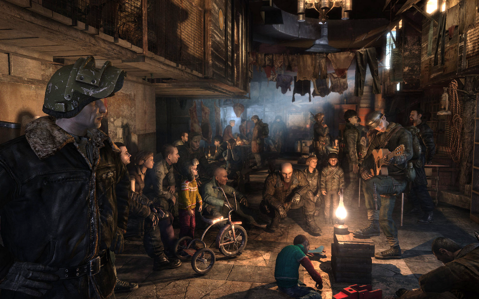 而人防工事的建设高潮则出现在60年代末70年代初,彼时我国内外形势异常复杂,“深挖洞,广积粮,不称霸”的口号下,到处都在热火朝天地开挖防空洞等设施,各个城市之间还会互相交流挖“防空洞”的经验。 这一阶段的工程目的很明确:为未来战争做准备。因此,设计和布局上与城市建设是互相独立的。同时,由于这一阶段的建设工作很多是由群众进行的,因此不管是在规划还是质量上都很难做到统一水准。 随着形势的进一步变化,经济建设成为我国的发展重心,在1978年的第三次全国人防会议上,“早打,大打,打核战争”被“全面规划、突出重点、平战结合、质量第一”的方针取而代之。新形势下,人防工程的涵盖范围进一步扩大,从单纯的工事修筑扩展到组织指挥,通信警报和教育普及等方面的全面推进。 同时,这一阶段的人防建设由国家制定规范,更加注重社会和经济效益,强调和城市的发展相协调。因此,这一阶段及以后的人防工程往往“低调地”藏身于我们每天生活的城市中。 一些地下室装有超压自动排气装置,启动后可防止外界毒气以及受沾染的空气进入工事 21世纪以来,城市中已经鲜有见到专门为战争修建的人防工事,而更多的是结合地下轨道交通,地下商场,车库等设施的建设进行一些专门的要求与设计,从而能在战时将其转变为合格的掩蔽工程。 例如,目前很多小区的地下车库,其中的车位分为“产权车位”和“人防车位”。前者即业主从开发商处购买的,拥有产权;而后者根据《人民防空法》规定,产权属于国家,只能租赁。人防车位一般是为特定目的或设备操作所预留的空间,在必要时刻可以被国家无偿征用。 以修建时间较晚的大连地铁为例,修建时间较晚的大连地铁1、2号线,其依靠人防面积,防护单元设置,防护设备种类数量,在竣工后瞬间成为了全市规模最大的人防工程,人防面积达到60万平方米。 大连地铁开通之际,人防办公室正在向地铁工作人员进行培训,注意右侧硕大的防护门和铁轨按照设计,每座车站都是一座合格的掩体:密闭设施,通风装置等特殊设备分布在日常乘客难以察觉到的地方。此外,每个站点都预留了连通接口,在必要时稍作改造,即可与站点周围的其它人防工程相连通。这些独特的设计,一经全面启动,可以满足30万人在核袭击情况下的掩蔽防护需求。 彼时,日复一日完成整座城市“社畜”通勤任务的地下铁道将瞬间承担起为国家、民族保存有生力量的光荣使命。 更有甚者,当全世界都升起蘑菇云的时候。躲进地铁中的那部分同胞将是否会如小说《地铁2033》中一样,以混杂着悲哀和骄傲的复杂神情说:“我们在这场灾难中保留了人类最后的文明”呢? 核战20年后走出地铁的幸存者与莫斯科“废土”(《地铁》系列游戏) 如此想来,希望明天,以及之后的每一天,“废土”只存在于科幻文学和游戏中。地铁也只是打工人抱怨上班的一个借口而已。 谢新星. 平战结合人防工程地下空间探讨[D].湖南大学,2013. 李群. 中国城市人防工程建设与管理研究[D].武汉理工大学,2009. 观察者网新闻报道《重庆轨道环线人防门与列车发生擦碰 致1死3伤》,2019. Anna Sorokina. What went down in the Moscow Metro during WWII? 2019. https://www.rbth.com/history/331256-moscow-metro-wwii-history John Rabon. London history: A look at the London Underground during WWII. 2015. https://londontopia.net/site-news/featured/london-history-look-london-underground-world-war-ii/