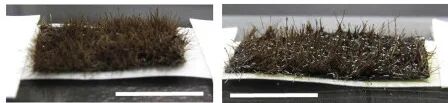 在马毛阵列上涂上离子液体凝胶“胶水”,马毛的状态也没怎么改变。