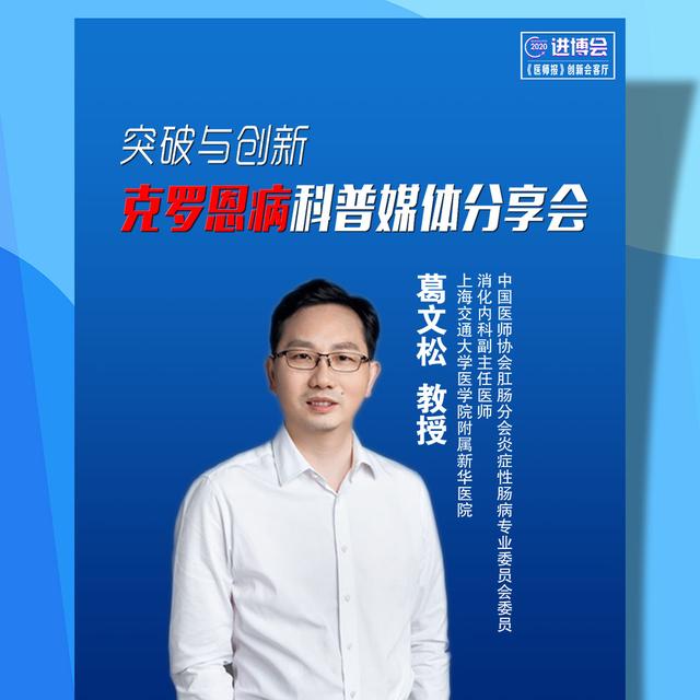 医师报创新会客厅特邀上海交通大学医学院附属新华医院消化内科副主任医师,中国医师协会肛肠分会炎症性肠病专业委员会委员葛文松教授,带来《突破与创新——克罗恩病科普媒体分享会》视频直播。
