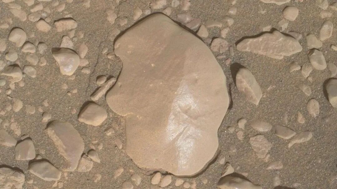当然,这不是真正的巧克力,而是一块火星岩石,光滑而有光泽,看起来像一个饼子,或石器时代原始人的石刀,或某种动物的“腰花”(肾脏),切好了就可以烫火锅了。说起来就开始口水流了,吃货们真不好看到这些东西。只是到火星上烫火锅可能不太现实,气压太小,恐怕要不了几分钟水就全部蒸发了,只剩一堆辣椒花椒八角大香之类的调料,让你干瞪眼。