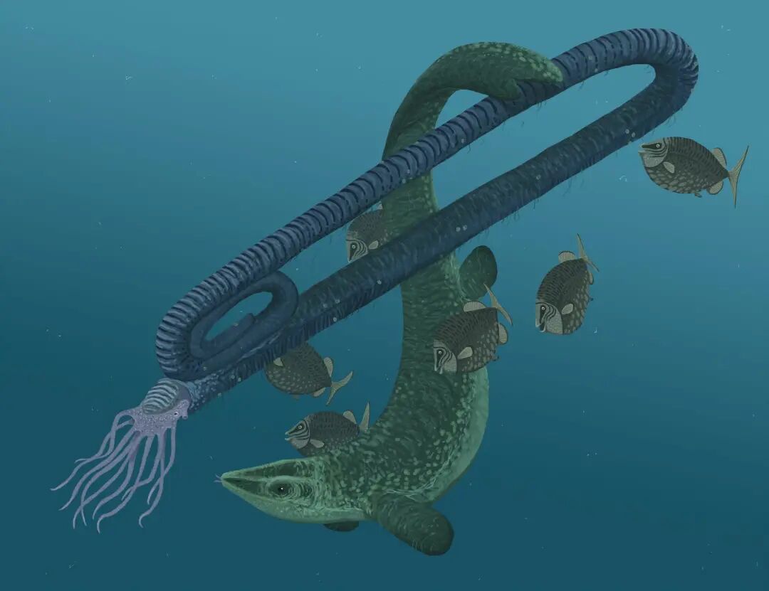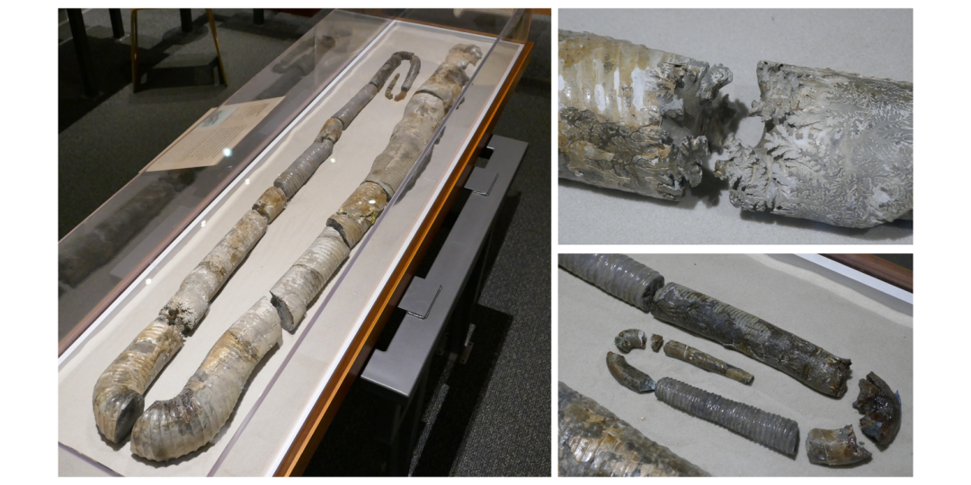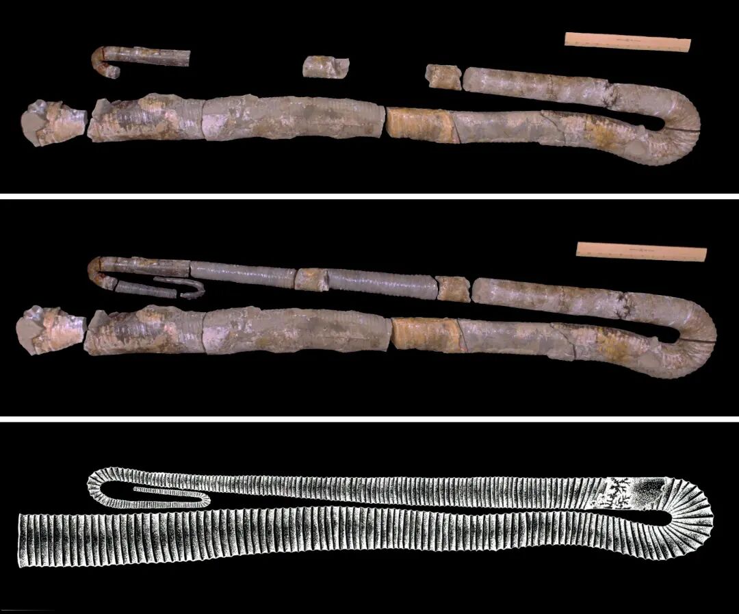 回形针乌贼的化石在纽约伊萨卡市地球博物馆向公众展出,如果你有幸看到,你也完全无法想象这家伙为什么会长成这样。它大约1.5米长,最大可能长到2米,和人类身高差不多;如果把它盘旋成回形针的身体打开的话,长度将会超过4米。令科学家们大吃一惊的是,回形针乌贼的寿命可能长达200岁,这是从它壳上类似“年轮”的隆起脊数出来的。这些脊通过吸积生长,根据碳氧同位素的重复特征,科学家们认为它们和每年海底释放的甲烷有关,这意味着回形针乌贼的外壳每年都会增长一个脊,慢慢地就越长越长了。问题是为什么回形针乌贼的壳要长来拐弯,回旋后又继续生长,然后还要再次回旋呢?这个奇怪的特征真的难死科学家了,不知道大家有什么看法或高见?