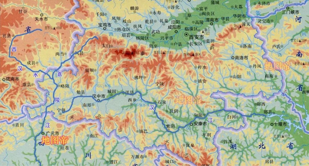 如果经常看地图,会发现嘉陵江有一条源头叫西汉水,从甘肃天水祁寿山向东南流淌,在陕西汉中略阳县汇入嘉陵江。西汉水和汉江是有关系的,曾经是古汉水的上源。古汉水发源于甘肃天水,西汉初年(公元前186年),在今陕西略阳、宁强一带发生武都大地震,山体崩塌堵塞古汉水河道,致使汉水上游中断而溢流改道至嘉陵江,史称“嘉陵夺汉”。