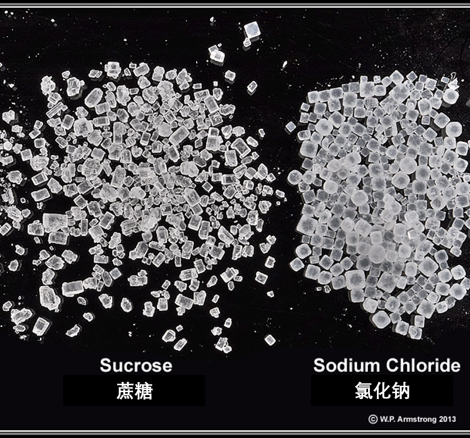 蔗糖颗粒和氯化钠颗粒 | 图源:见水印