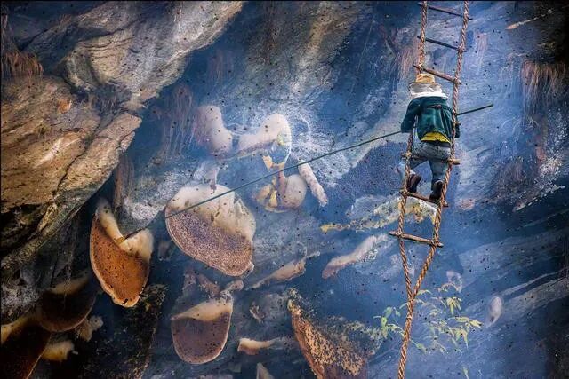 究其原因,这些采蜜人在采蜜的过程中承担着巨大的生命危险,而且,对于传统手艺熟练程度的考察也十分的苛刻,因此学习继承采蜜技能的人也变得越来越少。