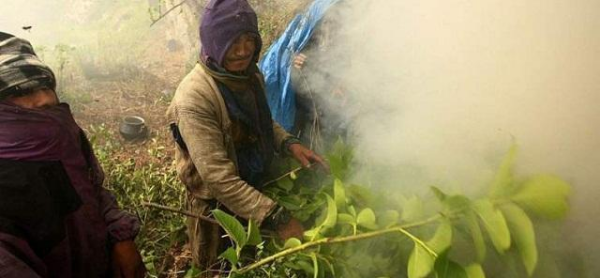 乌烟木,其实就是把湿润的树枝浸入到烧热的油里面然后将它点燃,乌黑的浓烟可以将大黑蜂驱赶出来。但2小时之后,大黑蜂便会对浓烟免疫,开始攻击采蜜人。图片来源/腾讯网