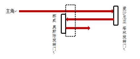 就像在挪威奥斯陆的旋转门,同时存在三个主角(黑虚线框),自己与自己同时存在同向、相向而行的情况。