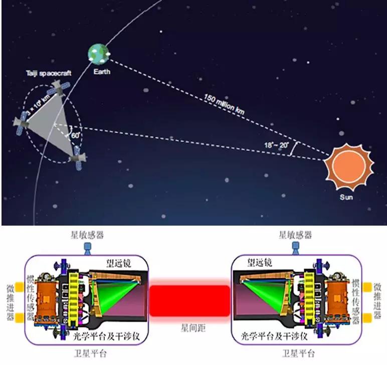 说到探寻宇宙起源,最火热的词莫过于“引力波”了。2016年2月,美国“LIGO”首次在地面直接探测到来自双黑洞并合的引力波信号,并获得了2017年诺贝尔物理学奖。中国的引力波研究也在如火如荼的进行,空间引力波探测计划——太极计划,计划在围绕太阳的轨道上发射三颗彼此相距300万公里的卫星,通过测量卫星间距离的变化来测量引力波信号。如此高精度的测距,“光”无疑是最精确的尺子,太极计划就选择通过光的干涉来测量两个星体距离的变化。