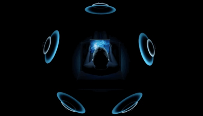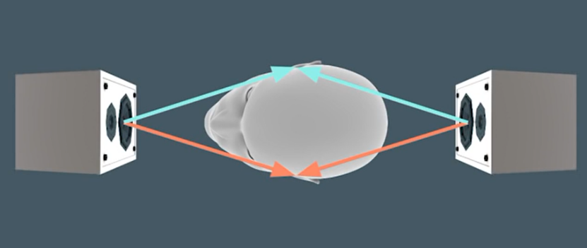 在影院看电影的时候,我们能感受到声音从我们的左边、右边、后边甚至是头顶传进我们的耳朵,从而给我们带来更好的听觉体验。这种能够使声音具有空间方向感的技术被称为环绕声技术,它能让听众体验到与现场几乎一致的声场。那么,如何才能实现这种环绕声技术呢?显然,最简单的思路是,在我们的耳朵四周放尽可能多的扬声器,这样不同的扬声器重放的声音能够让人耳感应到声音来自不同的位置,这也是电影院空间音频的设计思路。但是,对于个人来说,这样会增大我们的设备成本。与具有复杂音响设备的电影院不一样,我们的耳机只用左右两个扬声器也可以实现这种效果。这种用两个入耳式耳机发出空间中任意方向声音的技术被称为虚拟环绕声技术,也被称为沉浸式空间音频技术,是我们接下来要关注的重点。空间音频的目的是为了让人耳对重放的声音有更真实的空间感。因此,要深入了解空间音频技术,首先需要我们思考一个问题——人类是如何判断声音方向的呢?大家都知道,我们可以凭借一只耳朵来感受声音的响度、音调和音色。但是,如果想辨别出声音的方向,就要依靠两只耳朵了。原因在于两只耳朵才可以听出时间差和声级差。时间差是指声音抵达两只耳朵时间的前后差别,声级差则是两只耳朵听到声音能量的大小差别。比如在下图场景中,声源在我们的右边时,我们的右耳会先听到声音,之后声音才会到达左耳。声波在空气中的传播距离越长,能量会越来越小,因此右耳听到的声音能量要大于左耳。那么仅仅依靠时间差和声级差这两个因素,就可以实现声源在三维空间中的定位吗?如下图场景,当声音从我们的正前方和正后方发出的时候,到达双耳的时间差和能量差都是零。也就是说,当声音到达两耳的时间差和能量差都是零时,我们无法区分声音是从正前方来的,还是正后方来的。那么,问题又来了,双耳怎么辨别声音的前后方向?事实上,声音从发出到被我们的耳朵听到,经历了三个过程——传播过程、生理过程和心理过程 [1]。由于生理过程和心理过程几乎不可操控,在这里我们仅仅关注传播过程。传播过程也称为物理过程,是指声源发出的声波经由介质到达耳廓,再通过耳道传递到鼓膜并引起其振动的过程。这是一个极其复杂的过程,人耳廓构造的不同会使声波经由耳廓影响后形成的波形不尽相同。显然,正前方声源的传播过程和正后方声源的传播过程是不一样的!因为我们的耳朵并不是前后对称的。来自正前方的声音经过耳廓反射,可以直接进入耳道;而正后方的声音则需要绕过耳廓才能进入耳道。也正是由于这种不同,我们才可以分辨出声音来源的前后。耳廓相当于一个给声音进行“加密”的设备,而我们的大脑经过长时间的学习,已经完全掌握了这门“解密技术”,因此,可以轻而易举地听出声源的前后方位。现在,我们终于有了答案,双耳定位三维空间中声源的方向依赖于耳廓的“加密” [2,3]。更加科学地讲,加密声音的不仅仅是耳廓,还有头部轮廓和肩膀等身体部位。由于这一系列的影响都与头部有关,因此这种加密方法也被研究人员称为:头相关函数(Head Related Transfer Function)[4,5]。头相关函数可以理解成我们头部对于声音的加密方法,这种加密是针对不同方位的。也正因为头部对于各个方向上的声音加密方式不一样,我们的大脑才可以解密出声音的方向。为了解密不同声源方位的加密方式,研究人员可以通过测量或者计算得到不同方向的头相关函数[4,6],然后组成一个数据库。我们戴上耳机之后,声音便直接经由耳道,被鼓膜接收了。失去了头部加密的过程,耳机内的声音听起来也就没有了方向感。但是,随着声信号处理技术的发展,我们可以通过在耳机内部置入电子设备,来模拟头部的加密过程。如果我们的电子设备与头相关函数的加密方法一致,那么经过电子设备加密之后的声音就可以被大脑解密出方位信息,成功地“欺骗”大脑。正是基于这样的思路,工程师们开发了基于头相关函数数据库的空间音频方法。他们用数字电路来模拟整个的头相关函数数据库,然后对耳机内的声音进行特定方向上的加密,这样,就能够让耳机内的声音听起来具有特定的方向感。举例来说,在一场真实的音乐会上,小提琴在听众的左边45°,钢琴在听众的右边45°,无论是小提琴的声音,还是钢琴的声音,都能够经过听众的头部进行加密,现场声音听起来就有很好的方向感。如果线上的观众也想通过耳机获得身临其境的体验,那么耳机内部的数字电路可以选择左边45°的头相关函数来加密小提琴的声音,右边45°的头相关函数加密钢琴的声音,这样就能够“欺骗”大脑,让耳机内的声音听起来也有很好的方向感。由于这种声音不是从真实的空间中发出来,而是通过信号处理这样一种虚拟的方式“加密”出来的,所以被称为虚拟环绕声。近些年,随着耳机等可穿戴设备的应用越来越多,虚拟环绕声技术得到了大量的应用,也被科技公司称为沉浸式空间音频技术。参考文献: