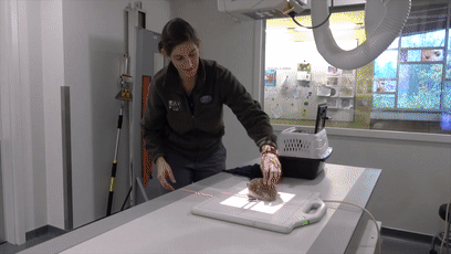 在动物园内还有很多会飞的动物,它们在大体检中也只能乖乖收起翅膀,接受X光的「洗礼」。
