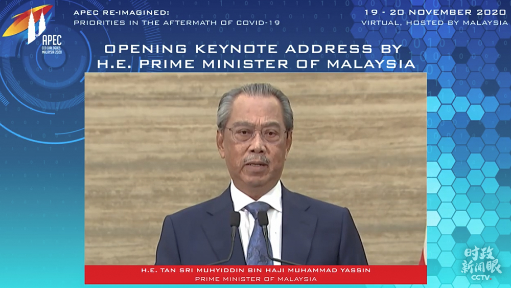 APEC成立于1989年,已经成为亚太地区层级最高、领域最广、最具影响力的经济合作组织,目前共有21个成员。在APEC五个层次的运作机制中,领导人非正式会议层级最高。从1993年到2018年,APEC领导人非正式会议每年都开一次,一共举行了26次。去年有些特殊,东道主智利因国内局势原因,取消了当年的APEC领导人会议。今年更是特殊,受新冠肺炎疫情等影响,会议改为了视频方式,工商领导人峰会也变成了对话会。△马来西亚总理穆希丁当天在APEC工商领导人对话会开幕式上致辞。(来源于APEC官网)