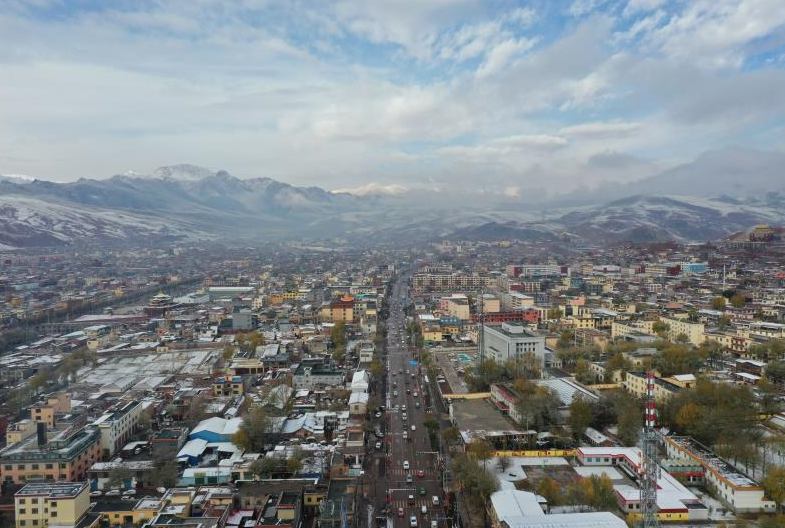 从青海玉树机场沿着214国道直奔东南,穿过羌塘草原无边的旷野,越过海拔4500多米的座座垭口,峰回路转间,便遇见这座高原小城——囊谦。曾经,这里是青海省的“贫中之贫”“坚中之坚”,也是青海省自然条件恶劣、交通不便、发展缓慢的突出贫困地区之一。如今,小城已完成脱贫摘帽和绝对贫困清零的艰巨任务。当下的囊谦,如珍珠一般,在高原上展现新姿。清澈的扎曲河流淌过香达镇,从前的“绝望坡”改建为宽阔大道;热情的老百姓越过广场,古老的舞蹈“卓根玛”依然绽放光彩;现代化的教育园区矗立大地,功能丰富的教室里回响着孩子们的琅琅书声;拔地而起的电商产业园,返乡大学生意气风发,经营起互联网工作室。千年小城,日新月异。荒沟变景区,作坊变产业,老百姓吃上“旅游饭”,贫困村变成“明星村”。县城边的多昌村,修路架桥、装灯改网、通水入户。土坯房变成独具特色的藏式红砖小院,柏油路通到家门口,自来水接到厨房操作台,教育园区盖到村庄边。贫困户成为致富带头人,“新手妈妈”坐在院子里用手机刷起了婴幼儿教育的短视频……村里的人与物,映衬着这片热土翻天覆地的变化。从着晓乡海拔4500米的寄宿小学,到占地450亩的县城教育园区,硬件改善,设施完备。校园里的草滩上建起阳光房,篮球课开到室内运动场,孩子们的“高原红”不再生冻疮。现代化教育园区覆盖了幼儿园到高中的各个学段,缓解了县城中小学“大班额”“大校额”的状况,孩子们实现了在家门口读高中的愿望。从“好上学”到“上好学”,孩子们共享学习的机会与资源,彰显着教育扶贫的蓬勃力量。县城里的电商服务中心,自主外卖平台、摄影工作室、“网红”产品销售厅,丰富的特色产品应有尽有。做工精美的唐卡实现在线销售,务工青年拨动几下手指就能预定多样的外卖套餐。130多种特色产品在这里展出,超过100万元的线上销售额在这里成交,30多名返乡创业的大学生在这里实现自己的创业梦想。持续发力,久久为功。在这里,时间穿越过千年高原,在新时代的土地上,记录下每一幕平凡的伟大。