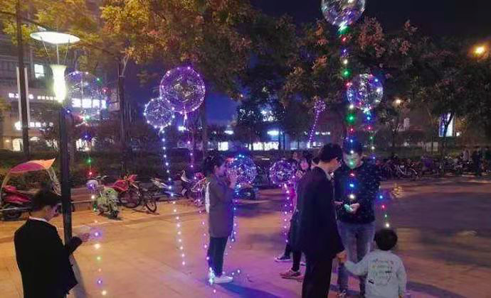 所谓的“网红气球”是一款发光气球,外带一圈LED灯带,灯带末尾还连着一块小小电池盒,可以随时控制灯带的开关。