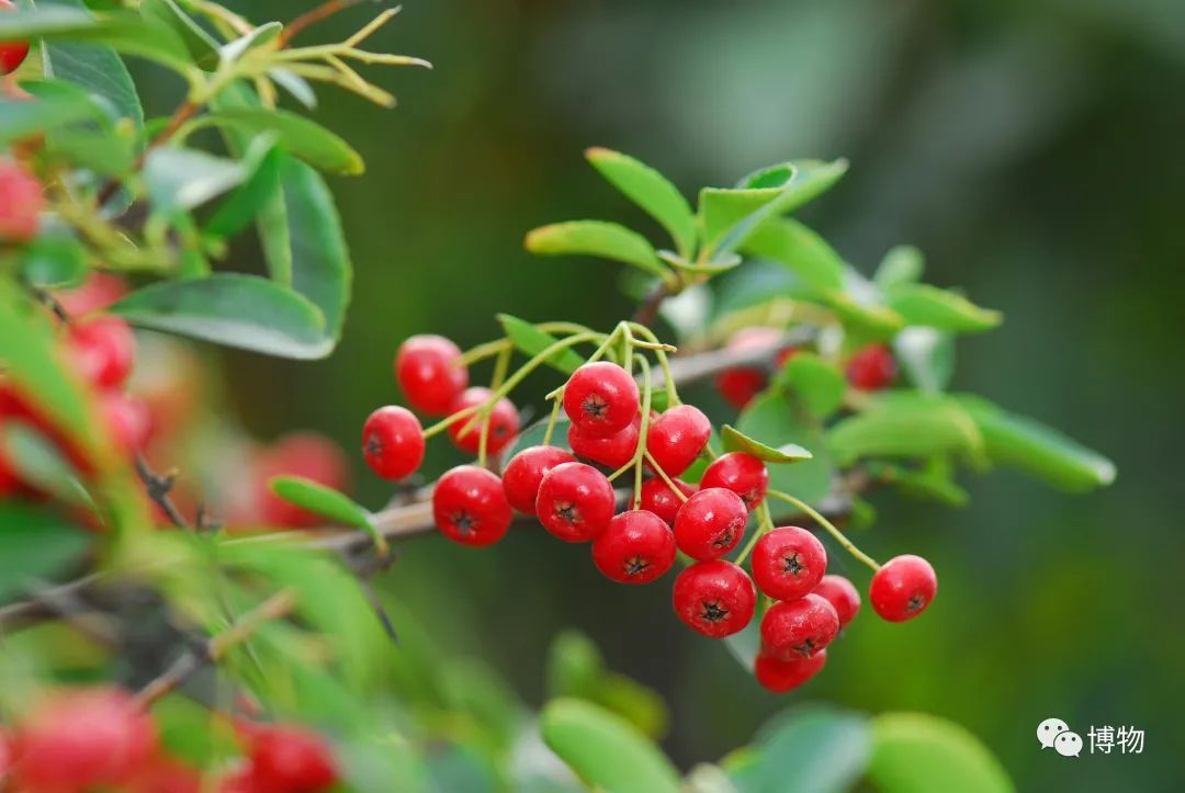 这种红色的果子叫火棘,别看它红彤彤,其实并没毒,可以吃。据说,火棘果子磨成粉,可以作为粮食的替代品,所以它的俗名是救军粮。