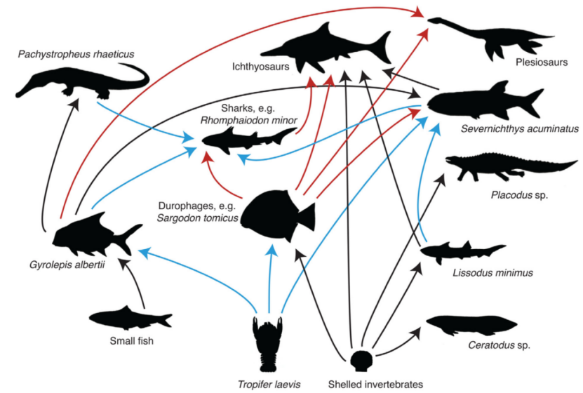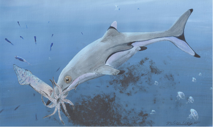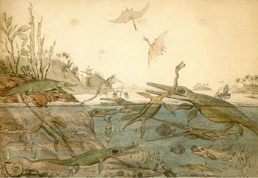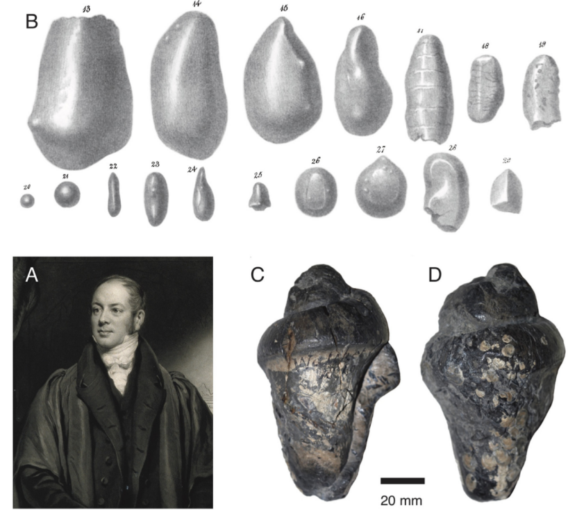 如果你是一个恐龙迷,想必不会对威廉·巴克兰(William Buckland)感到陌生,因为他描述和命名了第一只恐龙,是最早研究恐龙的科学家之一。但是,你未必知晓巴克兰的另一重要身份——“初代粪便化石猎人”。1821年,巴克兰在调查英格兰北约克郡的一个史前鬣狗洞穴时,发现遍地的鬣狗骨骼和牙齿化石之间,还散落着一些白色小球,怀疑是鬣狗的粪便化石。鬣狗粪便化石,发现于英格兰北约克郡的洞穴,保存在牛津大学博物馆。图片来源:参考文献[1]为了证实这个猜想,巴克兰跑去动物园里观察非洲斑点鬣狗的粪便。由于现代鬣狗十分喜欢食用其它动物的骨骼,摄入过多的钙和磷,导致粪便呈现白色,恰好洞穴中的白色小球主要化学成分也是磷酸钙。于是,巴克兰发表论文并获得皇家学会科普利奖章,科学地邂逅了第一坨粪便化石。从史前鬣狗洞出来后,巴克兰又把目光投向海滨小镇莱姆里吉斯。这儿的海岸线埋藏着大量侏罗纪时期的海洋生物化石,著名的化石收藏家玛丽·安宁在此发现了第一具完整的鱼龙和蛇颈龙化石,并注意到它们的腹腔保存有许多深灰色的小石头,石头里偶尔还会夹杂着骨头和鱼鳞。英国的莱姆里吉斯海岸,如今这里每年还会举办化石节。图片来源:wikipedia尽管小石头被当地人称之为“牛黄石”,并在16世纪曾被广泛用作解毒剂,但在玛丽·安宁的研究基础上,巴克兰认为鱼龙腹部的小石头其实都是粪便,不久后他创立了一个词“Coprolite”(粪化石),将所有远古粪便纳入其中。粪化石的形状千奇百怪,因为在这个世界上,没有谁能够拉出完全相同的两坨粪便。而且正常的粪便都比较柔软、易碎,在埋藏过程中会再次发生变形,甚至遭到食粪动物的破坏和风吹雨打的洗礼,从而出现球形、卵形、锥形、雪茄形、不规则形等等。其中,最令巴克兰着迷的莫过于螺旋状粪化石。(A)威廉·巴克兰;(B)他于1835年的绘画,可见螺旋状粪化石;(C)他收集的粪化石。图片来源:参考文献[3]关于螺旋状粪化石的成因,巴克兰认为是食物残渣会经过一段螺旋形的肠道,渐渐形成带有螺旋纹的粪便,并以这一形态排泄出体外,最终被埋藏形成化石。这一观点并非异想天开,因为现生鲨鱼、肺鱼、银鲛、鲟类的肠道就有这样的结构:回肠内的粘膜层排列成螺旋瓣,就像一个螺旋楼梯。当食物兴冲冲来到螺旋瓣后,一圈又一圈的结构不仅可以延缓食物的移动速度,还能增加肠道内的消化面积,让鱼儿们更充分地吸收营养。乐于动手的巴克兰哪能放过这些活生生的例子,他直接往鲨鱼的肠道内注射一种能够快速凝固的水泥,最终成功复制出水泥版的螺旋粪便。在捣鼓粪化石研究的同时,巴克兰还给自己定制了一张“粪化石桌”,桌面嵌满经过抛光打磨的鱼粪化石,用来招待晚宴肯定别有一番风味。一块动物骨骼化石,能让我们真真切切地感受远古生命的不可思议,这是一坨粪化石无法比拟的,那为何巴克兰沉迷于其中?以螺旋状粪化石为例,它可以直接反映排泄者的消化道内部结构,表明古代鱼类的肠道也有螺旋瓣,有利于吸收营养物质;也能作为鱼类分类的依据,因为粪化石表面的螺旋纹与肠道内螺旋瓣的数量、疏密程度有关,比如现代鲨鱼肠道的螺旋瓣很密集,肺鱼次之,软骨硬鳞鱼类则很稀疏;还能反映排泄者的体型上限,比如螺旋纹数量<5圈的粪化石,排泄者体长上限为1~2米。就像你吃了金针菇一样,粪化石也含有未被消化的食物残渣,如骨骼、牙齿、鳞片、植物以及微生物等等,这些都能够反映古生物的猎物选择行为、食物偏好以及消化方式等相关生理学。简单来说,就是重建古生物的食谱。巴克兰在莱姆里吉斯海岸收集的鱼龙粪化石,除了包含鱼鳞、鱼骨以及小型鱼龙骨骼外,还有一些乌漆麻黑的粪化石。后来经过分析,粪化石中的黑色色素和鱿鱼等软体动物的墨汁具有相同的化学成分,从而知道鱼龙的食谱里还有鱿鱼。这是否让你想起了红心火龙果的“折磨”?鱼龙吃鱿鱼复原图,基于1.99亿年前的鱼龙的胃内容物所画。图片来源:Julian Kiely当拥有足够多的粪化石时,还可以重建古生态系统的食物网。这幅1830年的水彩画,展现了侏罗纪时期的莱姆里吉斯海岸,主要基于威廉·巴克兰的科学研究和玛丽·安宁收集的化石,是重建古代生态系统的第一次尝试。不信你看,蛇颈龙和鱼龙互相厮打的同时,还在悄悄拉屎——蛇颈龙腹下的椭圆状物体就是粪便。《Duria Antiquior》水彩画,描述史前时代的莱姆里吉斯海岸。图片来源:wikipedia今天,我们已经可以采用新的科学技术,来窥探粪便里的世界。2020年10月,英国布里斯托大学的科学家对成千上百坨粪化石进行CT扫描,识别出各类骨骼、鳞片和牙齿,重建了布里斯托地区两亿多年前的浅海食物网:海洋爬行动物和鲨鱼吃小鱼,小鱼吃更小的鱼和龙虾,鱼龙甚至可能还会啃生蚝。顶部为鱼龙,右上角为蛇颈龙,蓝色箭头表示2020年研究的捕食者-猎物关系,红色箭头和黑色箭头来源于2018年的研究。图片来源:参考文献[3]CT扫描结果还显示,各种粪化石内部的骨骼和鳞片几乎没有损坏,这意味着史前海洋动物的消化能力欠佳,无法像现代大多数食肉动物一样溶解骨头,只能硬着头皮,努力把骨头拉出体外。最有意思的是,一厘米长的鲨鱼粪化石竟混合着三块骨头,一块来自鱼类的头骨,另外两块来自小型海洋爬行动物的尾椎。鲨鱼粪化石内部的三块骨骼,蓝色为鱼类头骨,绿色