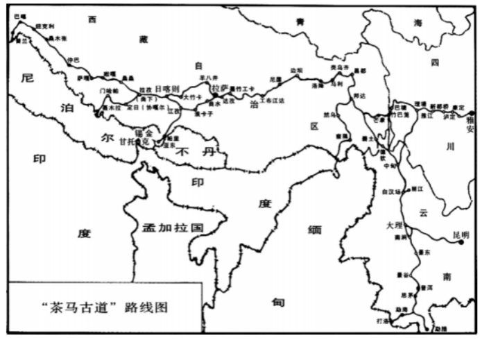 “茶马古道”路线图(目前通行版本)图源来源:孙华《“茶马古道”文化线路的几个问题》