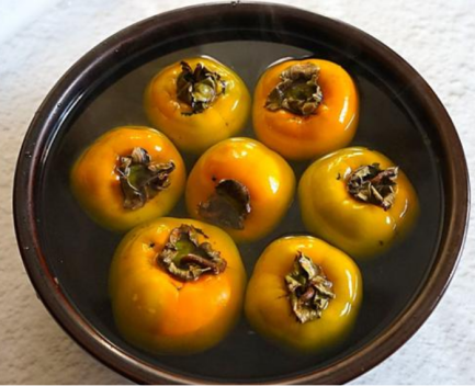 将柿子浸泡在洁净的清水中,每天早晨换一次凉水,7-15天后便可脱涩,这种方法又名“冷柿”。虽然时间长一点,但是不需要加温和额外的设备,并且脱涩后的柿子会比较脆。