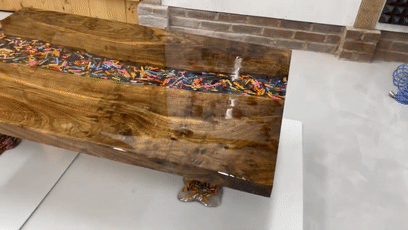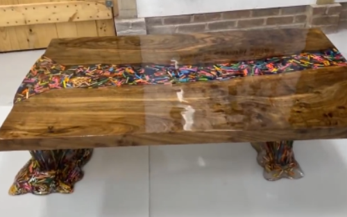 下面这张桌子也用到了铅笔,而且还是一条「铅笔河」:它由工大佬Nick Zammeti制作,桌面是由两块木板拼接成的,木块中间被塞满了铅笔,然后浇了一层树脂。