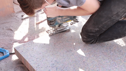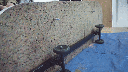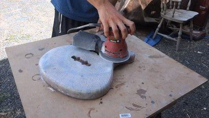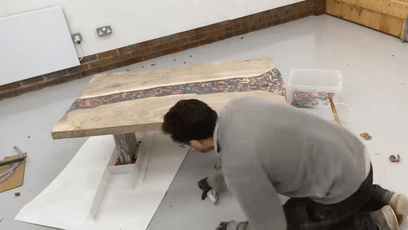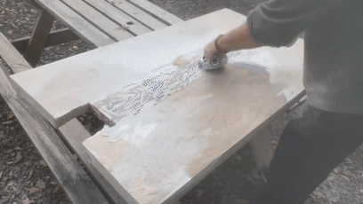 接着需要打磨桌面,过程有多么艰难,看这位大叔的沧桑造型就懂了。