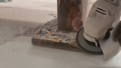 接着需要往模具内倒入环氧树脂用以定型,看起来极为美观:但下一秒美感消失不见,因为造型固定好后,就可以取出来打磨了,全程粉末飞扬: