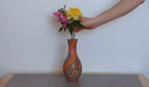 例如下面这个木质花瓶,它就是用铅笔做的,出自另一位手工大佬Olivier Gomis之手。因为这位手工小哥拒绝使用环氧树脂,所以他先把铅笔粘在了一起。