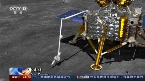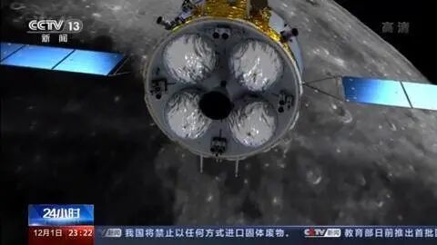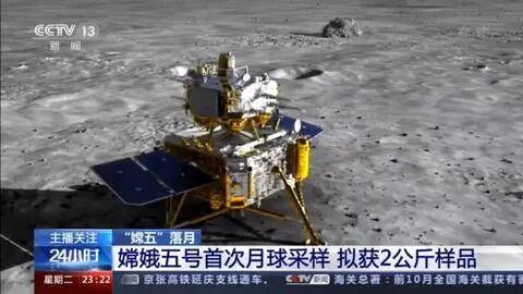 12月1日23时11分,嫦娥五号探测器成功着陆在月球正面西经51.8度、北纬43.1度附近的预选着陆区,并传回着陆影像图。