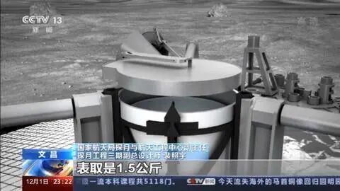 国家航天局探月与航天工程中心副主任 探月工程三期副总设计师 裴照宇:比如说钻取,初步考虑是0.5公斤,表取是1.5公斤,这是我们的设计安排。