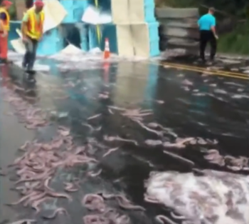 看完了最不黏的水熊虫,该说说本书中的黏液冠军:盲鳗。事实上,这种动物会产生大量的黏液,以至于当一辆满载这种动物的卡车在美国俄勒冈州翻车时,黏液覆盖了整条公路,还有附近的一辆汽车!坦白地说,这都是由于黏液量过多。它们究竟是什么奇怪的动物?盲鳗共包括76个物种,这些无颌、鳗形的鱼专门在死去或垂死的动物身上挖洞觅食。它们的黏性令人难以置信:一旦40毫克黏液从盲鳗身体两侧的腺体中释放出来,就会膨胀超过10000倍,变成超过1升的黏液!如果把一条盲鳗放进桶里,再将你的手放进去搅一搅,你就会抓出一大把又厚又黏的液体。为什么会有这么多黏液?因为这些黏液可以防止盲鳗被吃掉。如果一条较大的鱼试图吃掉一条盲鳗,盲鳗就会产生足够的黏液去阻塞捕食者的鳃,阻止它呼吸。这导致潜在捕食者产生了一种相当恐慌的反应——吐出盲鳗。然后,这条盲鳗,就又可以黏糊糊地多活一天啦。