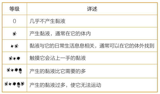 这个词可以用来指一大堆滑溜溜甚至是黏糊糊的物质。你最熟悉的可能是自己身体产生的黏性分泌物——鼻涕和唾液,在地球上的大部分生物群中都有发现,但它们并不是仅有的黏稠物质。有些物种甚至有自己独特的黏液成分,而这些蛋白质或其他分子并不存在于其他物种体内。当然,这些物种产生黏液并不是为了取乐,许多物种的黏性分泌物不仅有用,而且对它们的生存来说是必不可少的,用途包括:保护身体、抵御细菌、帮助消化、呼吸、运动、进食……有的动物甚至用黏液来造房子!在这本《黏液动物的新鲜事儿》中,你将了解到别处完全看不到的黏液冷知识。本书作者的另一本作品《动物的“屁”事儿》我们也推荐过,堪称科普书中的一股清流。一起来一场轻松有趣的黏液之旅吧!为了确定每一个物种或每一组物种有多黏,我们凭借在生物令人厌恶的习性方面的专业知识,设计了一个专业的黏液等级评估体系。等级: