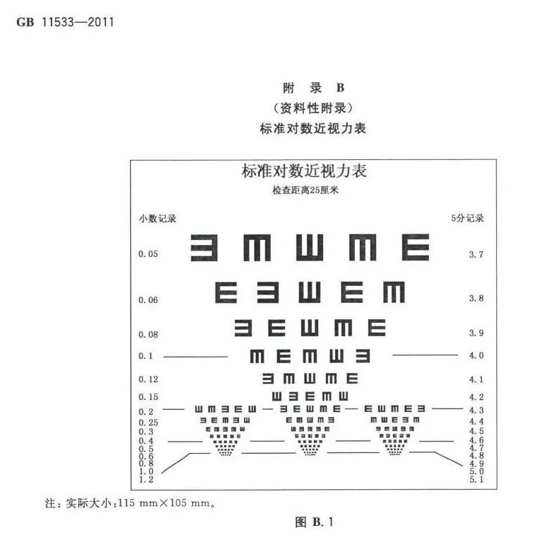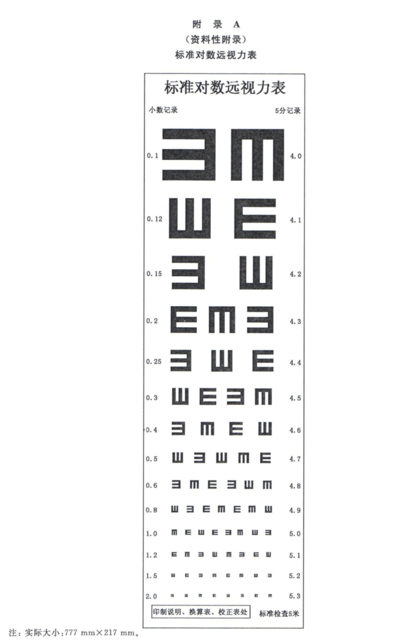 1952年的中华医学会第九届大会上,普及了“E”字视力表,2011年,我国又更新换代,实施了新版的对数视力表国家标准,这让视力表的第一排多了一个“E”、让灯箱变得更亮,也规范了我国的记录方式为“标准对数”,也就是“5.0”。