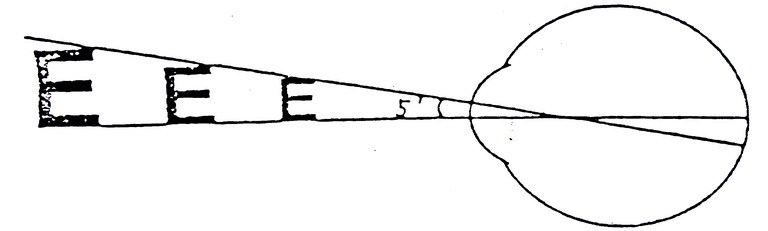 而且,不同大小的“E”,在不同的距离与第一结点都呈5分视角。其中每个“E”的每一个小段,也都为1分视角。↓ ↓