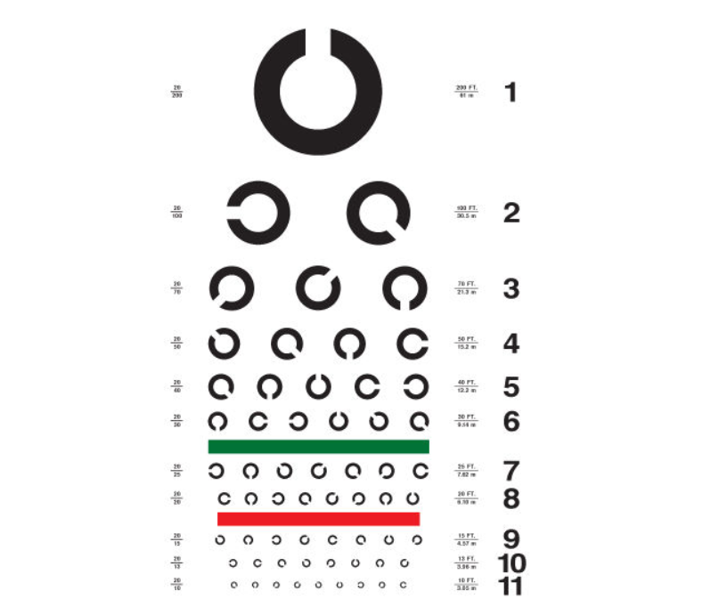 日本常用的、也是国际通用视力表——C字形视力表,又叫做兰氏环形视力表。在我国主要用来检测飞行员等对视力有高度要求的职业人员。