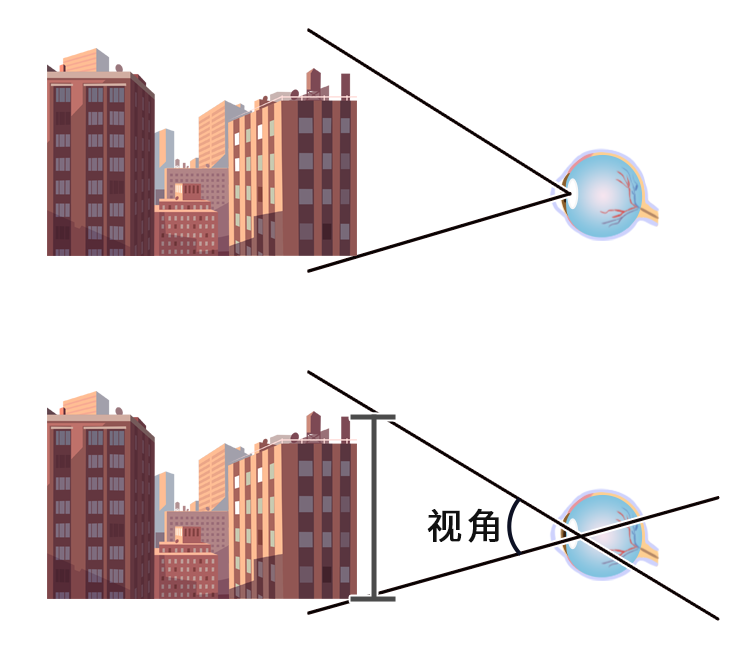 人眼能分辨两点间最小的距离,这个距离和眼睛形成的角度就叫做最小视角,也叫作一分视角。
