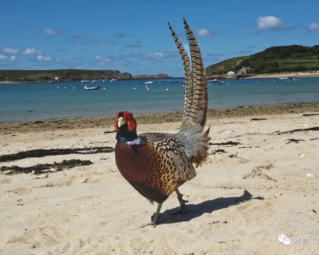 一只在海边散步的环颈雉。中国沿海广布环颈雉,但它们顶多在海边觅食,不会入海。