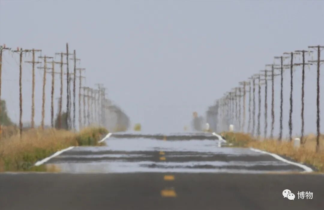住在城市的你,用不着跑到沙漠,挑个大热天,开车上路,能看到柏油路的尽头仿佛有积水,汽车走在上面还有倒影,这就是下现蜃景。