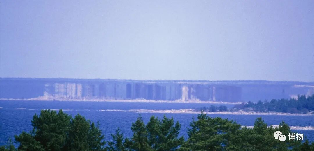 复杂蜃景经常会在海面立起一条“光墙”,墙中的景物极度变形。