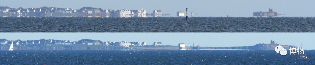 法国布列塔尼出现的蜃景,右边左边时断时连