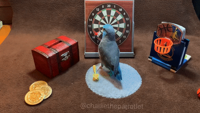 它还可以将金币放在保险箱中,把飞镖放在靶上,把篮球投入框里: