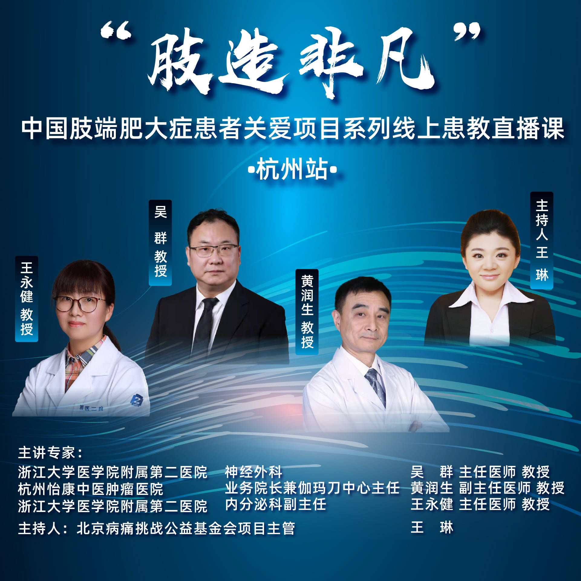 本次患教直播课邀请到浙江大学医学院附属第二医院神经外科吴群教授,浙江杭州怡康中医肿瘤医院业务院长兼伽玛刀中心主任黄润生教授,浙江大学医学院附属第二医院内分泌科副主任王永健教授,将为大家分享《2020版中国肢端肥大症诊治指南概述》《爱不罕见——对话肢端肥大症》《肢端肥大症伽玛刀治疗》议题。
