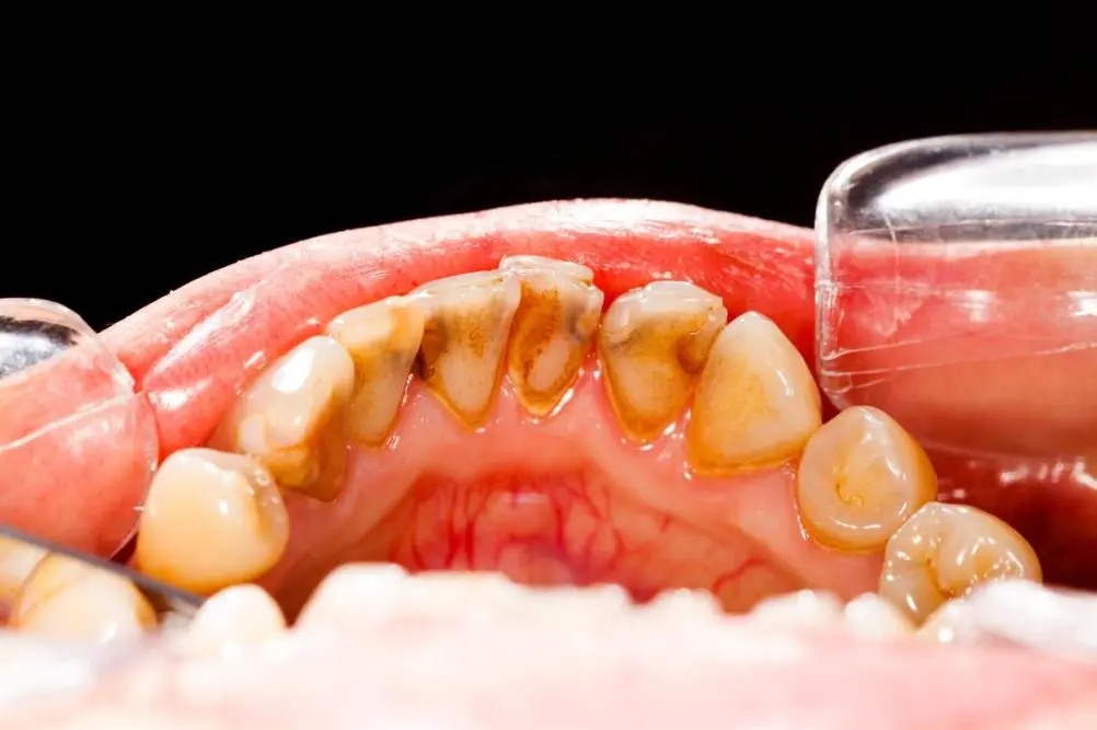 牙齿周边积聚着大量牙结石